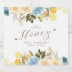 Saudações para a Noiva Abelha com nossos rótulos de garrafa de cerveja temáticos de abelhas. Esses rótulos são perfeitos para um chá de noiva com tema de abelhas, com um favo de mel e um design de abelha adorável, juntamente com flores azuis e brancas e abelhas zumbindo.