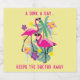 Festa de picleball tropical super engraçada com flamingos, bebidas e folhagem tropical rosa. Texto personalizado