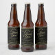 Estas etiquetas de garrafa de cerveja vão tornar a sua celebração de casamento ainda mais especial. Eles apresentam um design que é simples, mas elegante, com texto dourado sobre fundo preto com borda floral de folha de ouro. O texto diz: Obrigado por Celebrar Conosco espaços para inserir os nomes dos casais de casamento, bem como a data do casamento. Há também um lugar para entrar no tipo de cerveja ou outro conteúdo de garrafa. Texto totalmente personalizável.