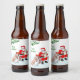 Rótulo Para Garrafa De Cerveja Feliz Natal! Papai Noel com Gato e Cão