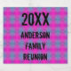 Celebre sua reunião familiar no estilo vibrante e de coloração de gravata com esta brilhante etiqueta de garrafa de cerveja. Este rótulo apresenta um padrão neon de cor rosa e azul junto com seu nome de família e ano.
