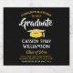 Adicione um toque personalizado às decorações da festa de formatura do ensino médio ou faculdade com estes rótulos elegantes para garrafas de cerveja pretas, brancas e douradas. O design apresenta um fundo preto, um chapéu de formatura amarelo, tipografia moderna elegante, caligrafia estilizada à mão e uma mensagem personalizável que diz "Parabéns ao nosso Graduado". O texto na parte inferior inclui o ano de formatura, nome da escola e linhas opcionais para grau, tipo de bebida ou outras informações. Todo o texto é fácil de personalizar. Estes rótulos são uma ideia estilosa para bebida na festa de formatura e um complemento elegante para a celebração do dia especial do graduado. Parabéns!