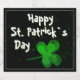 Rua Feliz Irlandesa do Shamrock Verde. Etiqueta de Cerveja do Dia de Patrick. Uma Rua Feliz. O texto do Dia de Patrick com os shamrocks irlandeses verdes para dar sorte. Vestuário tem quatro folhas. O fundo é preto. Você pode mudar o texto.