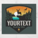 Design do Clube de Caça a Caçadores Personalizados de Veados - Elk com Antilers, Palmeiras de Pinheiros Verdes, Belo Rio e Sunset de Ouro - Personalize com seu nome ou Texto Personalizado!