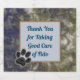 Você tem alguém que se importa com seus animais de estimação quando você está de férias ou alguém que caminha com seu cachorro diariamente? Este rótulo de garrafa de cerveja de apreciação apresenta um padrão azul girado e abstrato de ouro elegante e semelhante a um padrão de mármore. O rótulo do frasco contém um quadrado azul-claro e de ouro sólido, que fornece o pano de fundo das suas palavras de apreço. Uma impressão de pata preta é exibida no canto inferior do quadrado central. "Obrigado por cuidar bem do Fido" pode ser facilmente personalizado com o nome do seu animal de estimação.