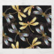 Padrão sem costura com ouro, joias, libélulas brilhantes com asas brilhantes e detalhadas sobre fundo preto. Dourada libélula.