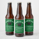 Uma etiqueta de cerveja de festa de reunião de classe personalizada em verde e branco para um segundo grau, faculdade ou universidade. Personalize com seu nome de escola e sua classe de graduação sob a elegante caligrafia para as etiquetas de celebração personalizadas de alunos excelentes.