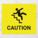 Avise a todos que você é desajeitado e propenso a descer escadas com este ícone preto da imagem de uma pessoa caindo em um conjunto de escadas. A palavra cautela em letras pretas maiúsculas. Ativar amarelo de segurança brilhante.