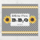 design de ocasião "BaByQ" com pequenos búfalos diagonais em preto e branco com um retângulo branco de borda preto central para seus nomes e data.