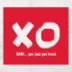 Um simples beijo e design de abraço em vermelho e branco adequado para Dia de os namorados, Casamentos, Noivados ou apenas para dizer que te amo. Você pode mudar a citação de "BAM! você acabou de ser amado" para um nome ou sua citação favorita.