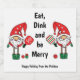 Etiqueta de Garrafa de Cerveja de Pickleball de Natal giro com Papais noeis jogando picleball em fundo branco. Coma, beba e seja feliz