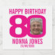 80 de aniversário, papel de festas cor-de-rosa quente e branco, cerveja ou rótulos de vinho. Excelente de adicionar um toque pessoal a uma festa de aniversário surpreendente da oitenta. Personalize com a foto de sua aniversariante no dia 08 de 80 e personalize com sua escolha de nome e data de comemoração de aniversário. Projetada por Sarah Trett para www.mylittleeden.com