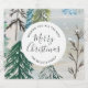 Clássicos adesivos festivos de Natal com tipografia personalizada sobre um fundo florestal pintado manualmente.