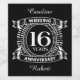 Rótulo Para Garrafa De Vinho 16.º aniversário de casamento preto e branco