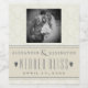 Lindas cores brancas e cinzas, com a fotografia da noiva e do noivo e nomes personalizados nesta elegante etiqueta clássica de vinho de casamento. Este vinheta de garrafa de vinho é personalizado com sua data de casamento e "Feliz Casado". Um fundo legante de damask. As cores de amostra são mostradas em tons brancos e cinzas. Personalize todas as cores. O vinho faz uma obrigado maravilhosa que você dá para dar aos seus convidados de casamento e festa de noiva. Para ver mais designs maravilhosas, visite "A Princesa Húngara - A Boutique" em zazzle.com/hungaricanprincess. Parabéns.
