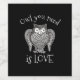 O desenho da coruja com corpo em forma de coração e texto personalizado.