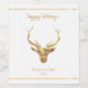 Rótulos de vinho de Férias, Dourado moderno. Natureza, design de Glam moderno. Cabeça de cervo de folha de ouro fabulosa com um fundo branco puro e limpo. Personalize seus presentes de vinho com esta etiqueta de feriado moderna. Coordenar designs de Natal estão disponíveis em nossa Coleção de Férias Modernas e Douradas no MetroEvents no Zazzle.