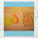 Um esboço de aquarela de uma pera e maçã com um jarro cor-de-rosa