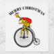 Um desenho engraçado de uma girafa, andando de bicicleta vestida e Papai Noel e carregando um grande saco de presentes de Natal. Se você quiser alguma ajuda para personalizar este design, entre em contato comigo, há um botão para perguntar a este designer, logo abaixo deste texto. A girafa engraçada está andando de bicicleta vintage, penny farthing.