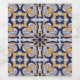 Design de padrão-azulejo português com decoração floral azul, branca e amarela