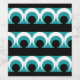 Ilustração geométrica de padrões com faixas, círculos e formas redondas em turquesa, preto e branco