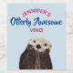 Personalizar com um nome ou outro texto. Esta etiqueta de garrafa de vinho foi desenhada com uma lontra adorável segurando seu rosto em suas pequenas patas. O texto sobre a cabeça dele diz:<name's>vino completamente incrível. Um trocadilho bonito escrito em uma fonte de tipografia de tendência.