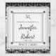 Esta design elegante tem uma cor damasco com o fundo a espreitar. Centrado é uma banda em prata com um medalhão quadrado para suas iniciais, seu encontro ou qualquer texto que você queira. O plano de fundo é completamente personalizável, basta clicar no botão Personalizar e no botão editar para selecionar sua cor. Este conjunto tem convites, cartões salve a data, cartões de resposta, cartas de agradecimento, cartões de tenda de número de tabela, selos de envelope, rótulos de vinho, etiquetas de endereço de retorno e muito mais peças de papelaria de casamento, favores e presentes disponíveis. Use os adesivos de selagem de envelope para qualquer dos seus presentes do DIY - estes estão disponíveis em tamanhos grandes e pequenos! Todos os elementos são impressos nos nossos produtos de alta qualidade, não incluem ouro real, joias, gravuras ou outros elementos têxteis. Todos os designs são copyright Noteable Express, Inc. Todos os direitos reservados.