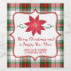 Cheio festivo com a etiqueta de vinho de Natal feita no padrão de Xadrez vermelho, verde e branco Stewart King George Tartan. Uma bolinhas vermelha e branca enquadrada em uma área decorativa de texto branco, no meio do rótulo, tem uma poinsettia bonito feita em um olhar de película. Personalize o texto vermelho para sua festa de feriado ou para as necessidades de oferta.