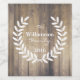 Etiquetas de vinho clássico, ao estilo da fazenda, consistindo num fundo de plâncias de madeira claro, com louros de trigo branco, que enquadram o seu nome familiar personalizado e o seu ano.