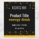 Um design de etiqueta de retângulo preto revestido com formas de energia amarelas.