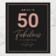Simples preto & roes - sinal de festa de aniversário "50 e Fabuloso" com tipografia elegante e elegante. Personalize-o facilmente com a idade, o nome, a data e o local da festa. Perfeito para presente de aniversário ou favor de festa.