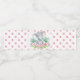 Rótulos de garrafa de água para chá de bebê de elefante menina com adorável elefante bebê menina usando um laço rosa em um fundo de bolinhas rosa. Você pode adicionar o texto de sua escolha ao banner nestes adoráveis rótulos de garrafa de água para chá de bebê de elefante menina.