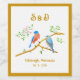 Rótulos de vinho de casamento com uma bela imagem de um par de pássaros azuis. As imagens, o fundo e o texto podem ser personalizados. Arte original de W.B.