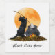 Um gato preto mexe a respiração num caldeirão preto grande. Personalize essas etiquetas de vinho do Halloween divertidas.