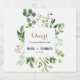 Estas elegantes etiquetas de vinho espumante de eucalipto são perfeitas para um casamento tropical. A design apresenta lindas folhas verdes de eucalipto pintadas artesanalmente, dispostas em formas geométricas, inspirando beleza natural. Faça com que os autocolantes da garrafa de vinho sejam os seus, incluindo os seus nomes e a data do seu evento. Esses rótulos podem complementar a recepção de casamento, ensaiar janto ou simplesmente mudar o texto para se adequar a qualquer celebração.