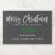 Etiqueta de Natal para frascos, com um simples galho verde contra fundo de quadro negro, e um guião de pincel de tendências.