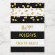 Feriados Felizes Personalizados Etiquetas de Natal com listras negras e brancas modernas e padrão de confete dourado. Personalizável com seu nome, perfeito para etiquetar presentes de natal ou assar feriado.