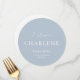 Round Dusty Blue Wedding Menu | Personalized Table