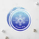 Festa de inverno convida num simples design de floco de neve escandinavo moderno num elegante fundo azul de gradiente. Criado em papel redondo para recurso exclusivo extra. Texto formatado na frente e no verso tudo pronto para ser editado com seus próprios detalhes.
