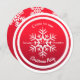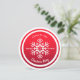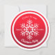 Festa de inverno convida num simples design de floco de neve escandinavo moderno num elegante fundo de gradiente vermelho. Criado em papel redondo para recurso exclusivo extra. Texto formatado na frente e no verso tudo pronto para ser editado com seus próprios detalhes.