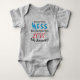 O design da Roupa de Bebê Adorável é totalmente personalizável, dando a você a opção de deixar a mensagem como está ou substituí-la por uma mensagem mais pessoal. A mensagem de exemplo diz: "Eu sei que sou uma BADERNA, mas você sabe que me AMA mesmo assim!". Se você optar por alterar a mensagem, lembre-se de que as fontes permanecerão as mesmas.