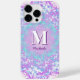 Capa de telefone retrorreflectora colorida em cores púrpura e azul.