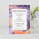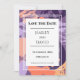Design abstrato moderno em roxo e coral. Esta simples e moderna abstrato para salvar o cartão de data é uma maneira perfeita de começar a celebração. Todos os detalhes no quadro branco podem ser personalizados para seus detalhes de casamento. O estilo e a cor da fonte podem ser personalizados para o seu estilo pessoal. A parte traseira da placa é um roxo sólido que corresponde ao roxo no design abstrato.