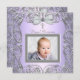 A cinza de prata elegante espirra lavanda de fotografia roxa búrpura batizando modelo. Este belo convite de humor branco, roxo e cinza é facilmente personalizado para seu batismo, batizar, primeira comunhão ou outro evento religioso, simplesmente escolhendo o botão "Personalizar!" para começar a adicionar seus detalhes de foto e evento, estilo de fonte, tamanho de fonte e cor e texto. Observe que todos os adesivos, cartões e designs de convite que você encontrará no Zazzle são gráficos impressos sem joias reais, arcos, levantados, gravados, ou peças ou peças adicionadas.
