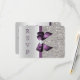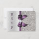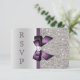 Cartões de resposta personalizados formais / convites planos para qualquer evento - casamentos, chás de bebê, festa de aniversário, festa de 16 anos, celebrações de Quinceanera, noivados, chá de panela, etc. Elegantes cartões de resposta personalizados com cores prata e roxo, impressos dos dois lados, com um lindo brilho glitter impresso, cristais, padrão de lantejoulas, laços e fitas vetoriais brilhantes impressos e imagem estilosa e bonita de diamantes brilhantes jóias. Esses RSVPs sofisticados e glamorosos são decorados em ambos os lados. Cartões lindos, elegantes, modernos e impressos dos dois lados com brilho e glamour. Tenho produtos correspondentes na minha loja. O texto, a fonte e as cores da fonte são todos personalizáveis para atender às suas necessidades. Se precisar de ajuda para personalizar seu produto, por favor entre