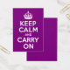Versão moderna "Manter calma e continuar" roxa e branca do poster clássico. Crie seus próprios cartões de visitas.