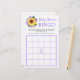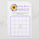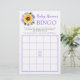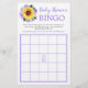 Este cartão de jogo de bingo chá de fraldas apresenta girassol de cor d'água e rosas roxos, flores com folhas. Personalize a parte traseira da placa com um nome. Produtos correspondentes disponíveis.