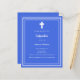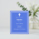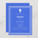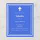 Um fundo azul real, decorado com um quadro branco, e uma cruz branca Personalize e adicione o nome e os detalhes. Texto branco. 1 folha = 1 convite impresso de borda a borda.