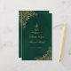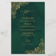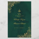 Real Emerald Green - Dourado Cartão de Menu de Casamento Islâmico Floral. Este cardápio de casamento é realmente elegante! A frente tem um belo fundo verde esmeralda com delicados florais de ouro. A caligrafia é requintada, começando com 'Bismillah' e a frase árabe 'wa khalaqnakum azwaja' (que significa 'E nós criamos você em pares'), seguida dos nomes dos casais, da data do casamento e do local. O verso também é esmeralda verde, e ele exibe elegantemente 'O Menu' no topo. O cardápio em si é belamente apresentado na caligrafia dourada, listando todas as deliciosas iniciações, cursos principais e sobremesas. É um toque muito especial para sua celebração de casamento