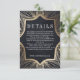 Art Nouveau faux gold Wedding Detalhes do convite Inserir cartão, um belo design, com padrões intrincados junto a um texto impressionante. Perfeito para o drama com uma sugestão de luxo gótico. Carvões, esmeraldas escuras e fundos de cinza, com uma escolha de detalhes de efeito de folha de alumínio. A suíte se encaixa bem com envelopes brancos nítidos e bandas de barriga correspondentes, ou, para adicionar luxo, escolha um dos envelopes complementares para obter o máximo efeito. Veja aqui toda a suíte correspondente https://bit.ly/2GX1wCJ